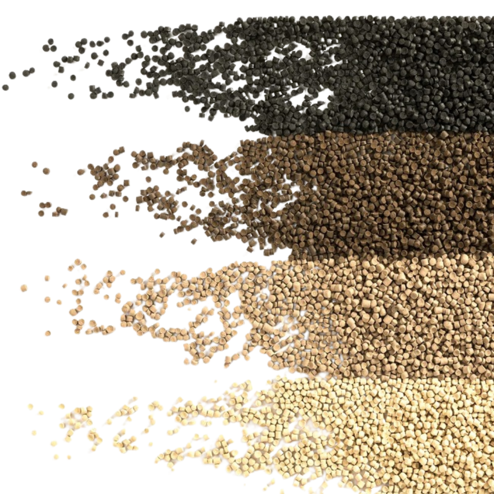 Our Wood Plastic Composite (WPC) is an innovative material made by blending wood fibers with thermoplastic polymers. The production process starts with the collection of wood fibers, typically sourced from sawdust, wood chips, or agricultural residues. These fibers are combined with recycled polyethylene (PE) plastic polymers. To enhance the properties of the composite, we incorporate various additives such as UV stabilizers, colorants, coupling agents, fire retardants, and lubricants. The mixture is then heated and extruded into desired shapes and profiles, resulting in a versatile, durable, and eco-friendly composite material suitable for a wide range of applications. We customize the raw material based on specific requirements from our customers.